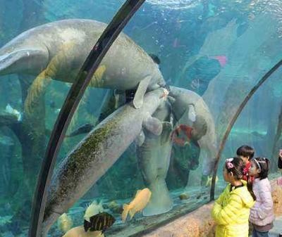 进到海洋王国后,可以直接去海牛馆,里面有各种各样的热带鱼类,在大型的倒U型玻璃通道能看到鱼在身边游,给你极大的震撼。