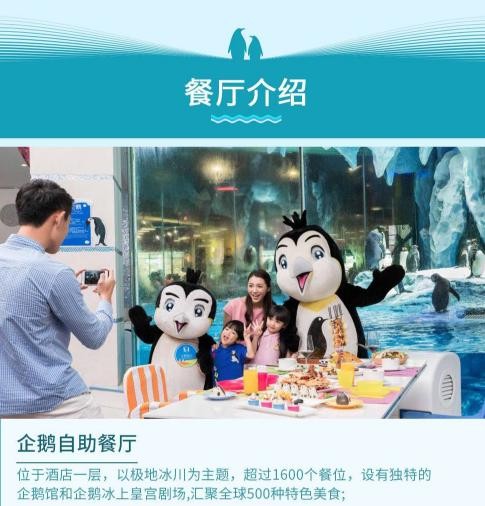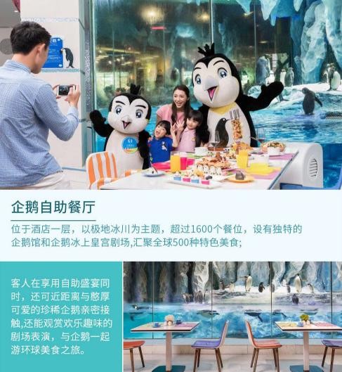主题客房数量达2000间,拥有平常难以一见的企鹅馆,客人可以近距离接触呆萌可爱的企鹅。