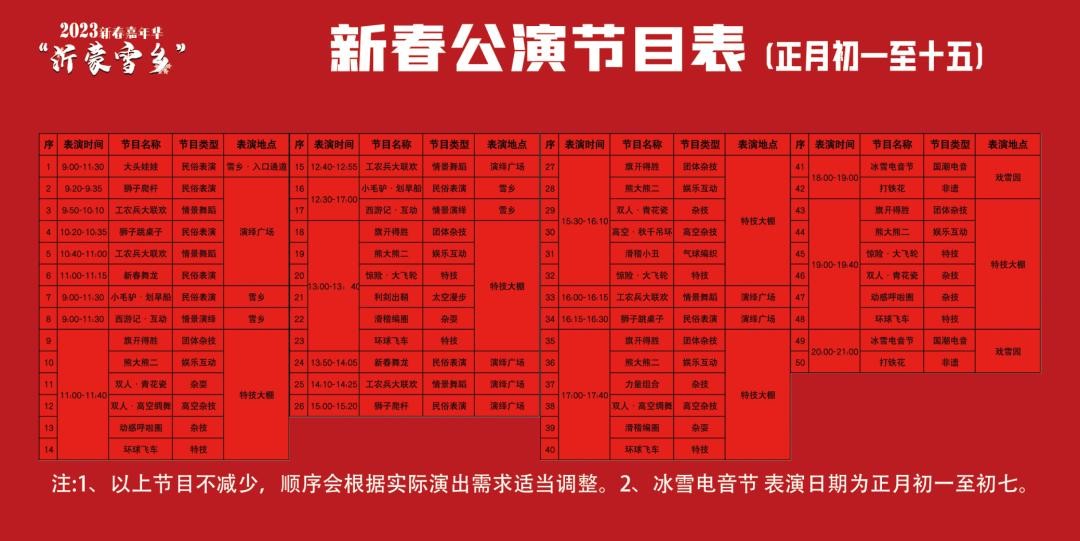 附:“沂蒙雪乡”公演节目表