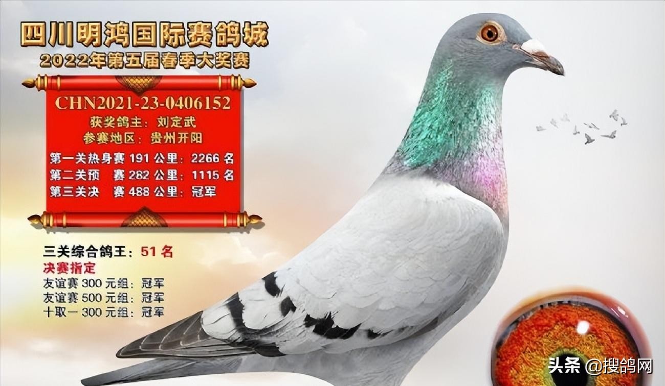 都是以山区赛线著称,当四川鸽友碰上贵州鸽友,谁能更胜一筹?在四川明鸿国际赛鸽城2022年春赛中,贵州开阳鸽友刘定武的一羽2021-23-0406152灰鸽,强势逆袭,前两关均在千名之外,最后一关以一秒的微弱优势击败四川鸽友登顶冠军宝座,分速1106.5705米/分。此外在决赛中,9名、10名也来自贵州。