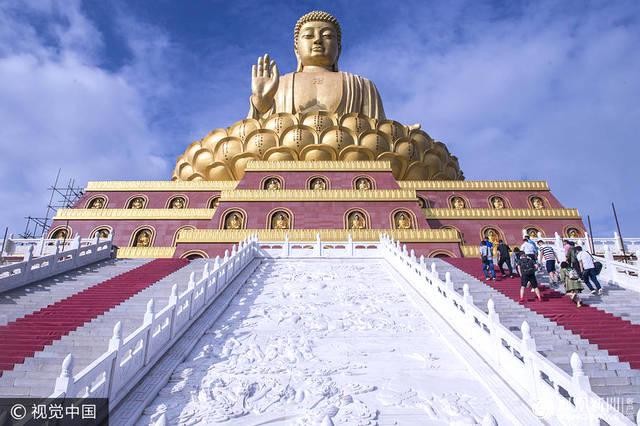 8月7日,山西长治襄垣县,一家民营企业依托经营多年煤炭生意所积累的雄厚资本,在当地一处山上建了一尊金光闪闪的大佛。(图片来源:视觉中国)