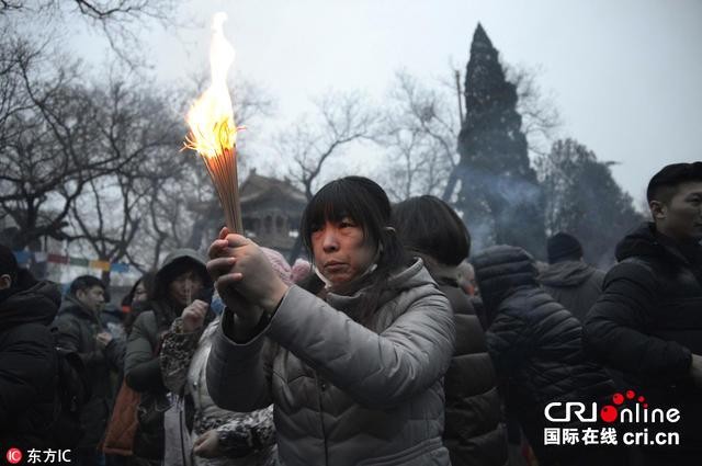 1月28日,北京雍和宫,大批市民赶在新年烧头柱香,祈福请愿。(图片来源:东方IC)
