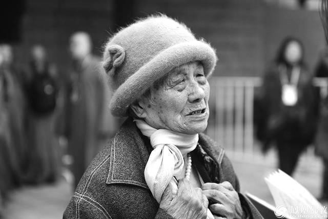 12月13日下午15时,2017年“世界和平法会”在侵华日军南京大屠杀遇难同胞纪念馆遇难者名单墙前举行,南京大屠杀幸存者向记者讲述当时悲惨经历。(图片来源:凤凰佛教 摄影:熊明月)