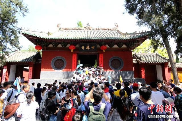 4月30日,嵩山少林寺,数万中外游客慕名前来,游览千年古刹感受博大精深的少林文化,现场人山人海秩序井然。(图片来源:中新网 摄影:王中举)