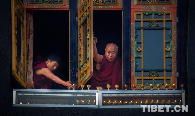 12月12日,藏历十月十五日,藏传佛教格鲁派寺庙信众点灯共迎燃灯日。(图片来源:中国西藏网 摄影:赵耀)