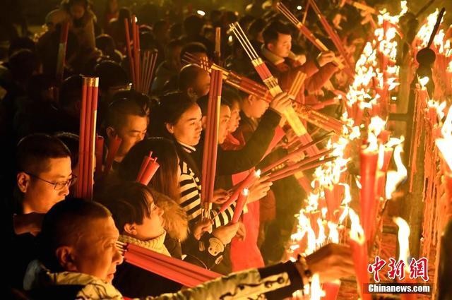 2017年1月28日,四川峨眉山报国寺上万民众祈福敬香,表达对未来美好生活的期许和迎接新年的到来。(图片来源:中新网 摄影:刘忠俊)