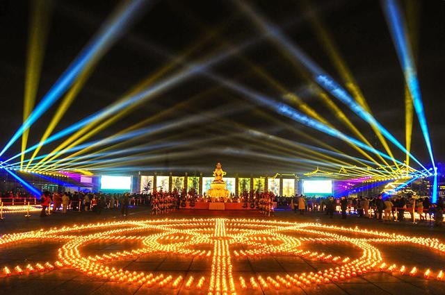 2月10日,农历正月十四晚,峨眉山大佛禅院“万盏明灯供普贤”大型祈福供灯法会,数千法师、居士及市民共赴法会、同沾法喜。(图片来源:凤凰佛教)