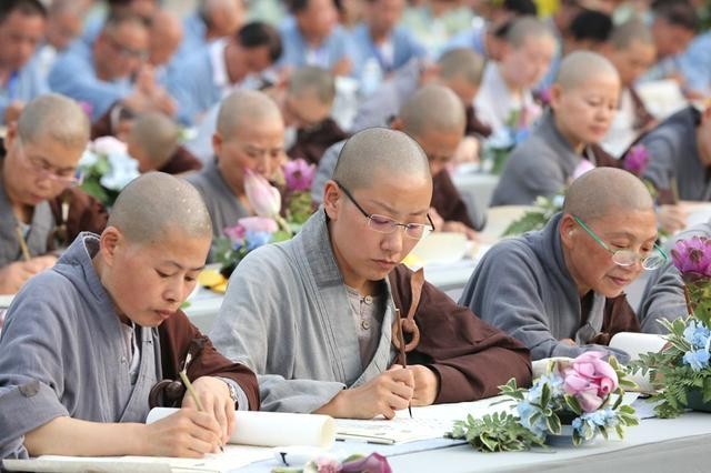 11月5日,栖霞山万人祈福抄经,抄经者来自各行各业,最大的80岁、最小的才8岁。(图片来源:凤凰佛教)