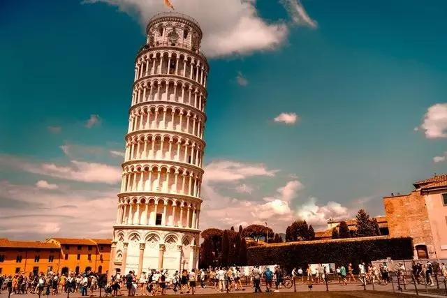 9.比萨斜塔位于意大利托斯卡纳省比萨城北面的奇迹广场上,它由著名建筑师那诺·皮萨诺主持修建。