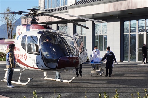 活动当天还举行了直升机航空急救转运和无人机低空标本转运演示。