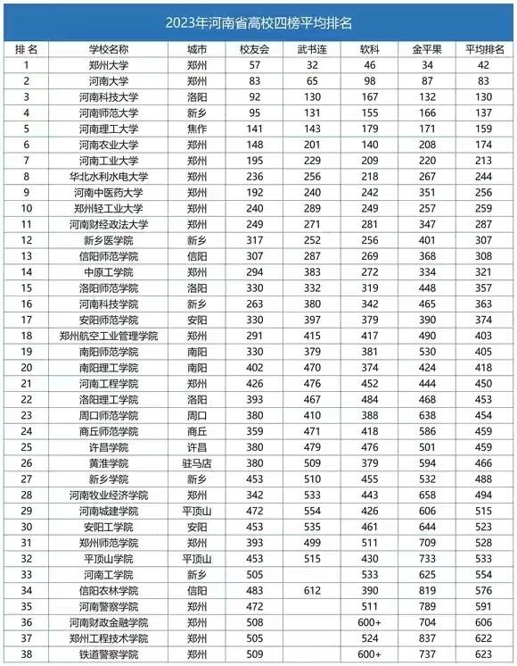 2023年河南省高校排名揭晓:郑大第一河科大第三新乡医学院第十二