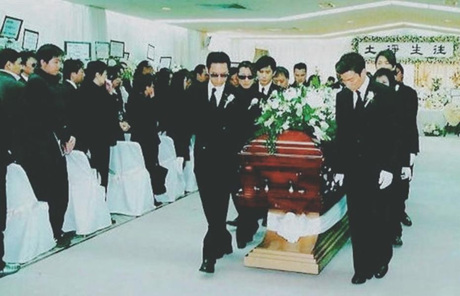 在葬礼上,张学友更是以干妹夫的身份为其披麻戴孝。