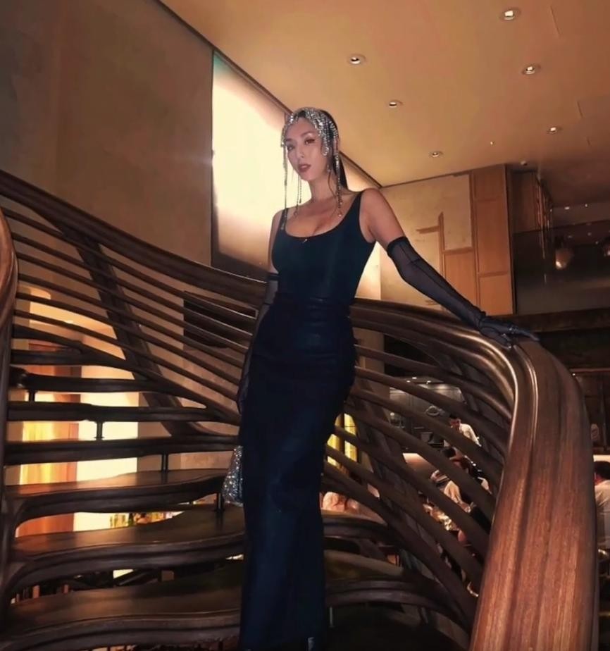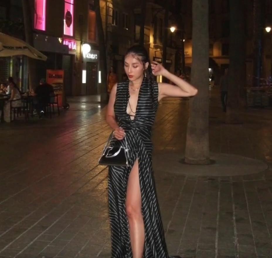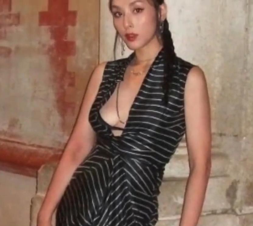 上图中可以看到李茏怡身穿性感长裙,一双大长腿十分的吸睛,丰满的上围若隐若现十分撩人。