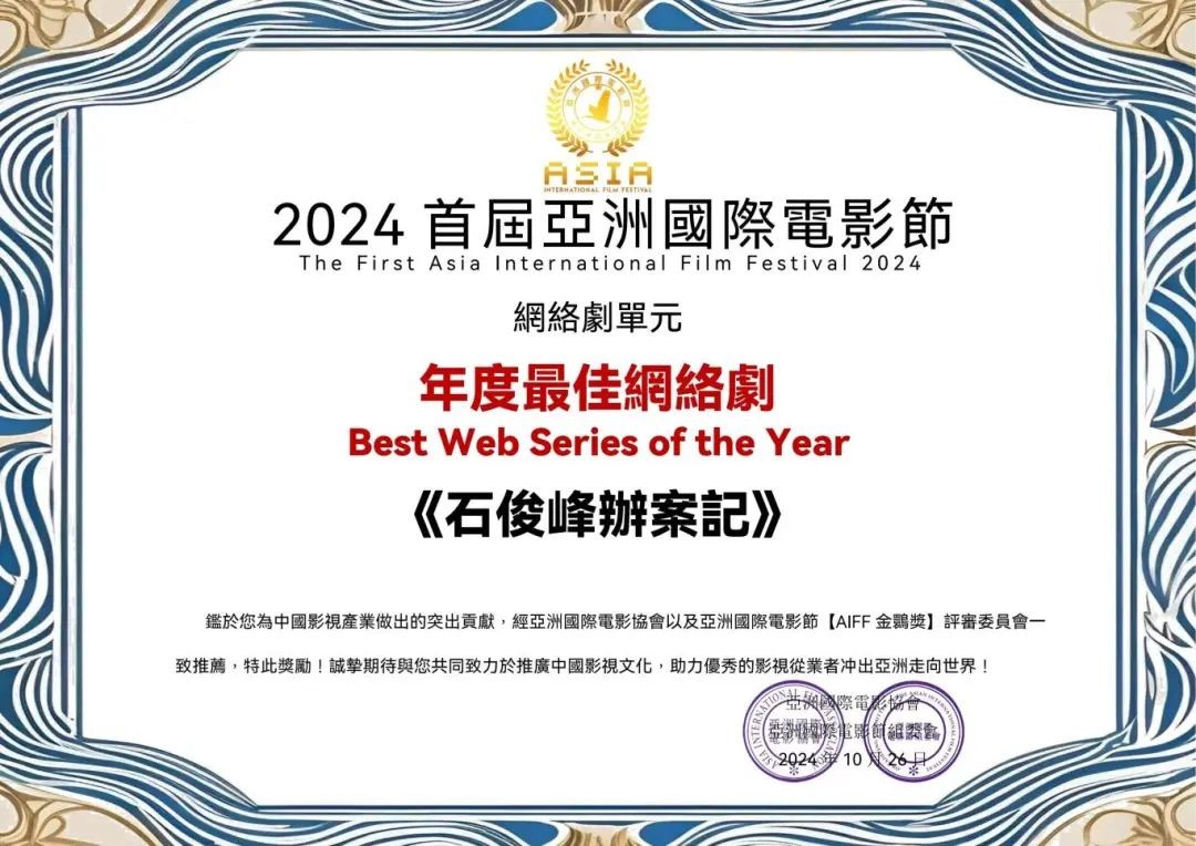 《石俊峰办案记》荣获2024首届亚洲国际电影节最佳网络剧