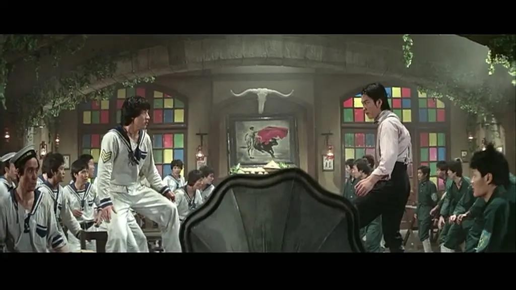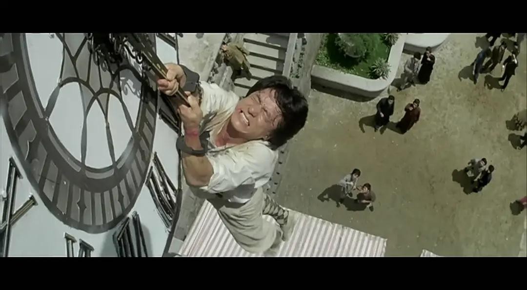 影片打斗场面众多,最经典的一幕当属成龙与敌人搏斗,来到钟楼位置,在掉下去的时候紧紧抓住时钟的指针,让观众为之心惊,这一幕也成为了成龙最经典的电影场景之一。