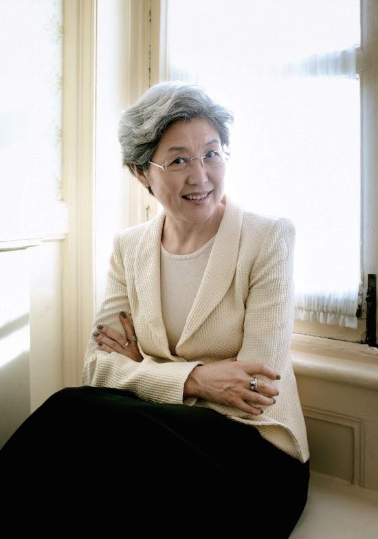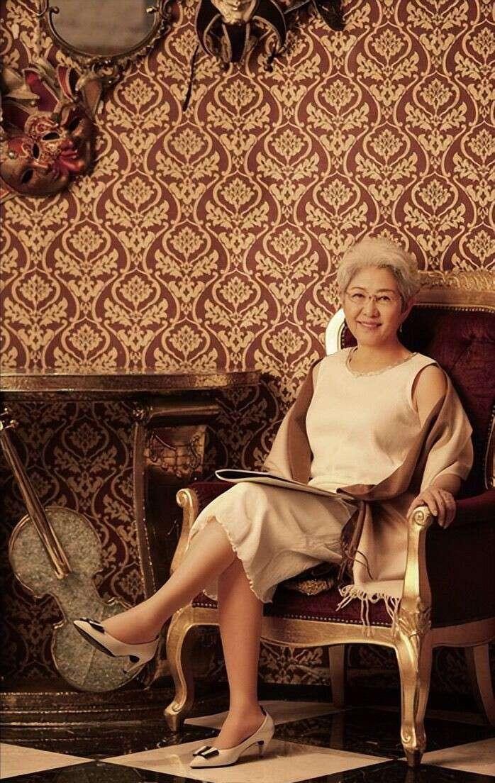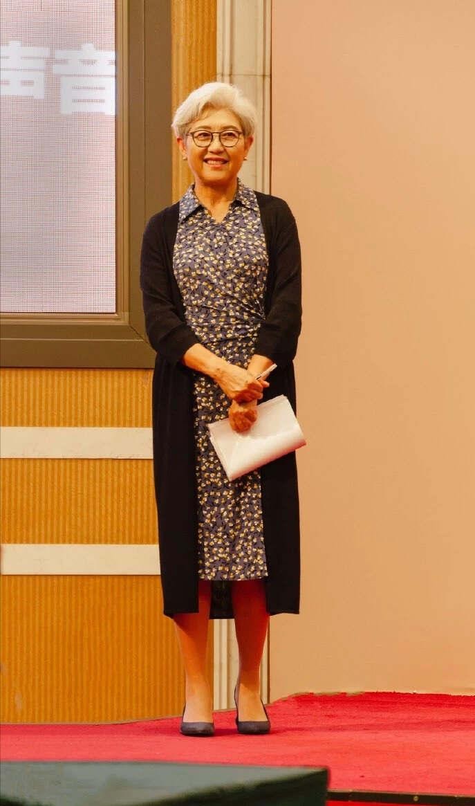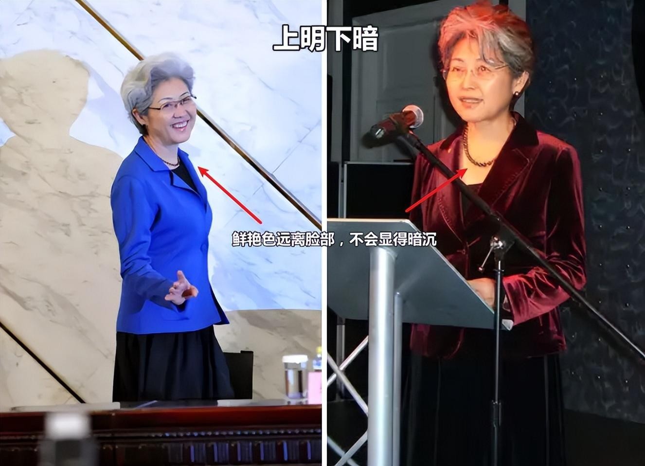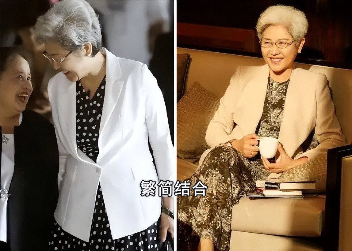 她的穿搭简约大方,正式穿搭也不枯燥刻板,满头银发也无法掩盖微润儒雅的气质。