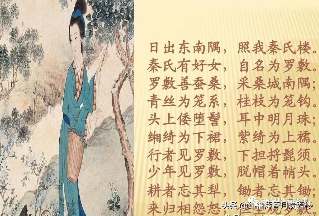 看美女忘了干活,互相埋怨,反正从来不怪自己,只因为看罗敷。