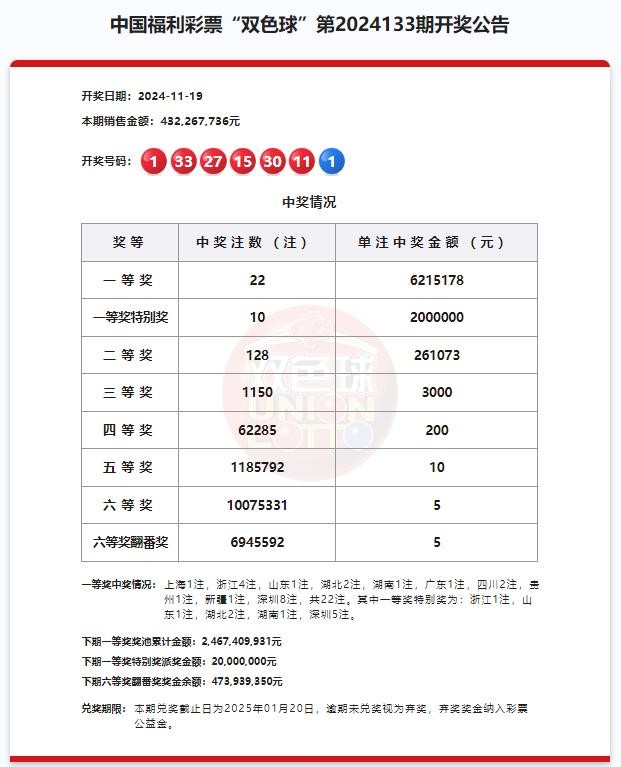 杭州3注,丽水1注!11月19日晚,双色球开奖第2024133期开奖,浙江省购彩者收获4注一等奖!其中杭州的3注为普通一等奖,单注奖金621万元;丽水的1注满足双色球12亿派奖条件,额外收获200万元派奖奖金,单注总奖金达821万元。