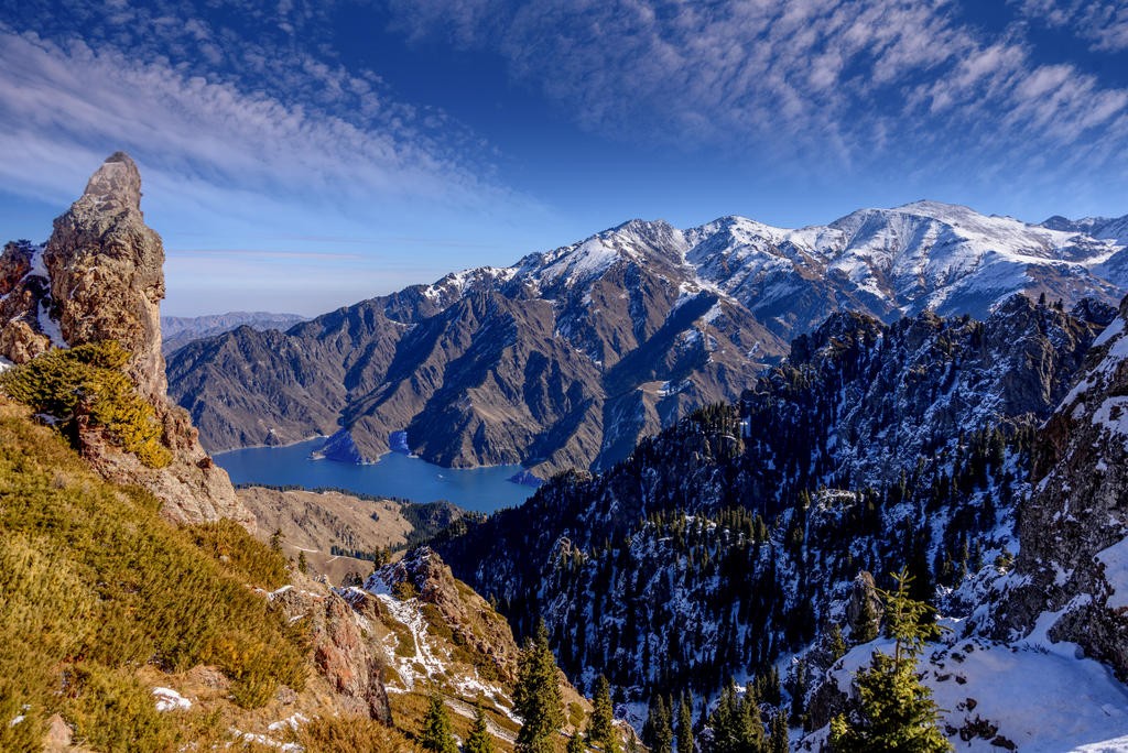 天山天池古称“瑶池”。传说是玉帝赐予西天王母沐浴养生的地方。整个天池雪峰倒映,云杉环拥,碧水似镜,风光如画。 地处新疆昌吉自治州阜康境内,博格达峰北坡山腰,是以高山湖泊为中心的自然风景区。2013年6月21日,第37届世界遗产大会投票通过中国新疆天山列入联合国教科文组织世界遗产名录。。。。。。