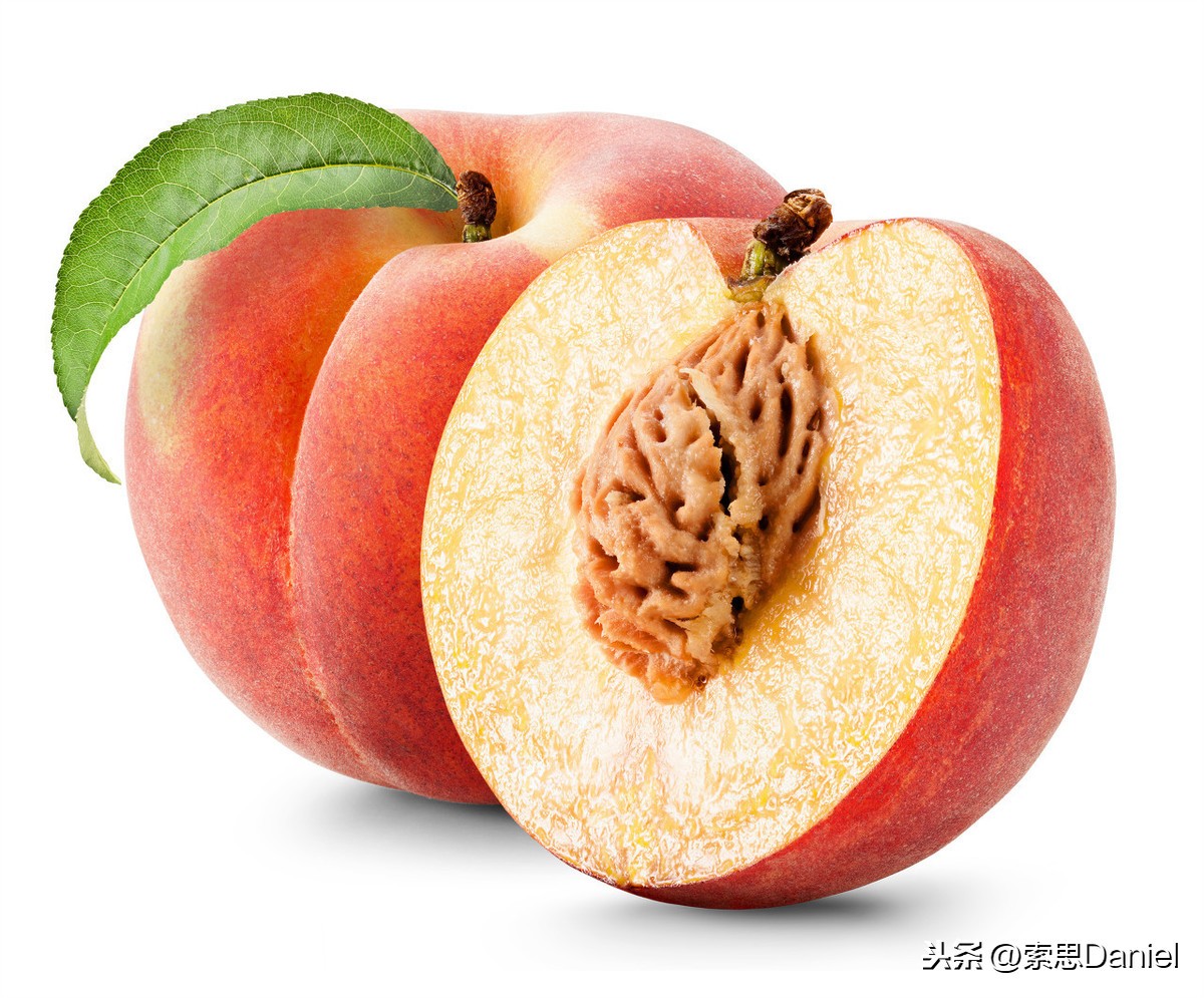 一种圆形的水果(a round fruit)有软的红色的和黄色的果皮(with soft red and yellow skin)黄色的果肉和一个大的粗糙的种子在里面(yellow flesh and a large rough seed inside)