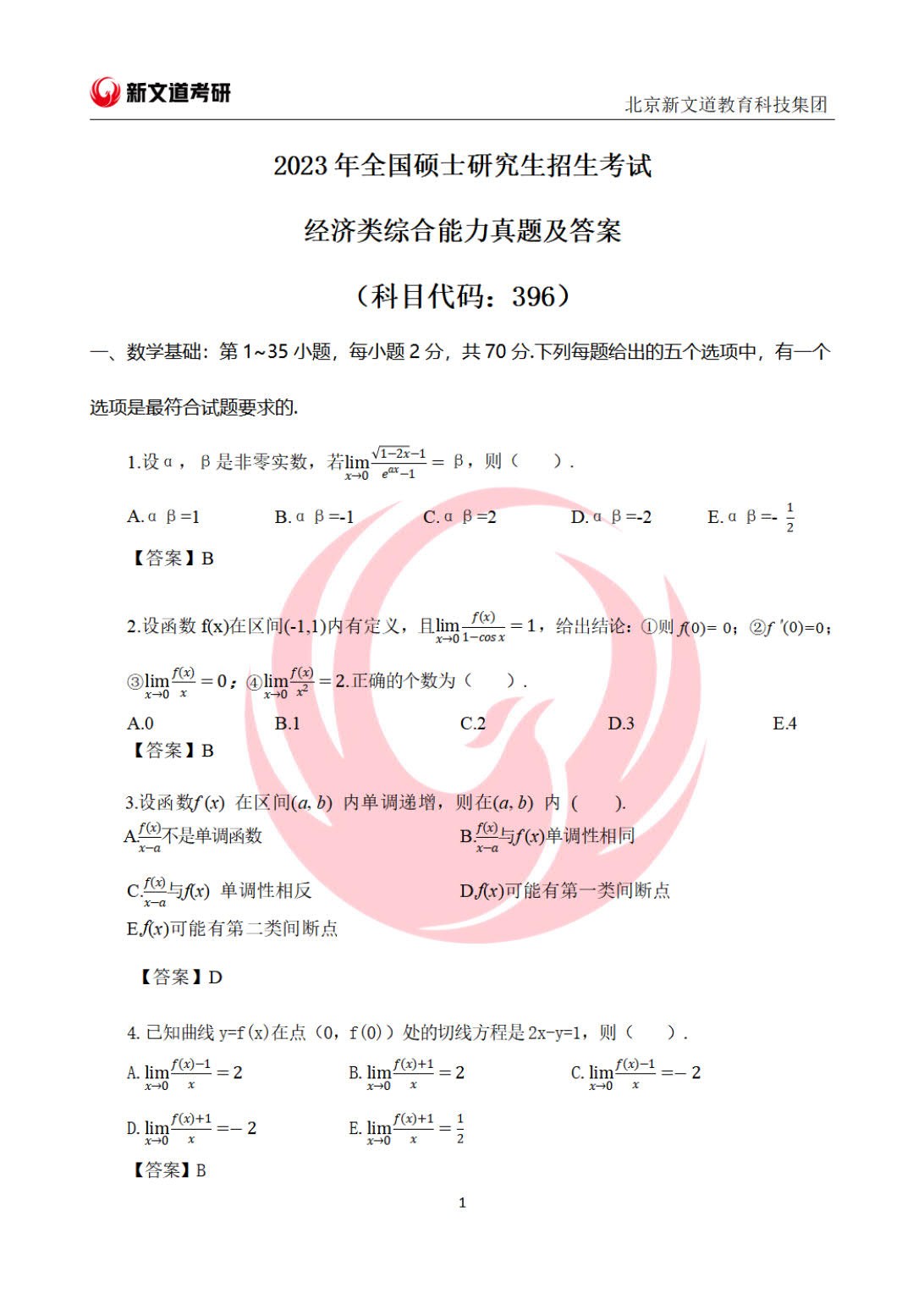 【完整版】2023年考研经济类联考396真题及答案解析