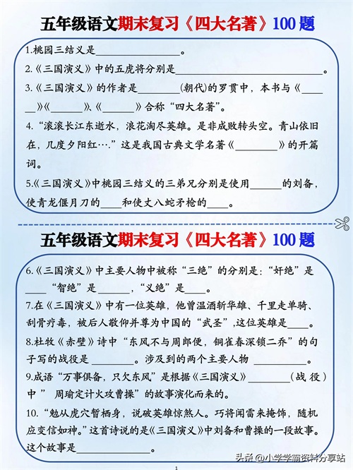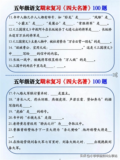 五年级下册语文啃透《四大名著》逆袭全班❗️❗️