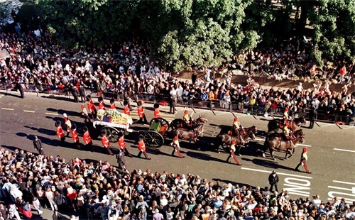 她的葬礼就像她的婚礼一样,被全世界观看。当威廉王子和哈里王子向他们的母亲道别时,人们再次流下了眼泪。