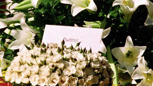 查尔斯王子、威廉王子和哈里王子看着留在宫殿外的鲜花。在HBO的纪录片《戴安娜,我们的母亲:她的一生和遗产》中,哈里王子在戴安娜去世时只有12岁,他说:“我在想,为什么这么多从未见过我的母亲的人会哭泣,并表现出比我更多的情感?”