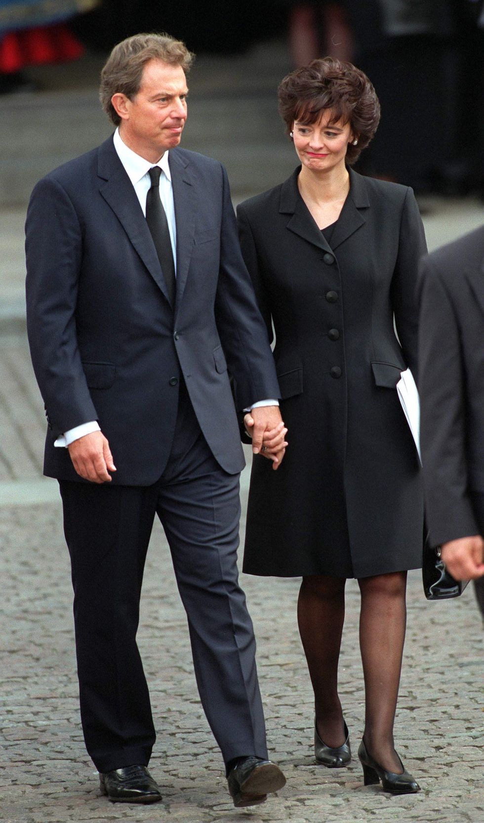 前首相托尼·布莱尔和夫人切丽在教堂外。