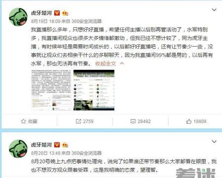 4、董小飒事件。玩LOL的都知道董小飒,至于他的人品不用多说,董小飒一直跟嗨氏有矛盾,后来嗨氏逼着虎牙官方给董小飒施压,若是不发赞美嗨氏不换直播平台的微博,便离开虎牙,董小飒迫于无奈,便按照他的意思发了微博。
