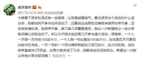 7、打压主播。还是多次因为虎牙专区推荐王者荣耀推荐的别的主播而发怒,找到负责人让其立即更换,若是不换,合同到期就离开虎牙。并且楚河还爆料,嗨氏私底下经常会见其它直播平台的负责人谈工资,并且给虎牙施压,要求虎牙涨工资。并且用水军在虎牙直播APP评论下面刷差评。