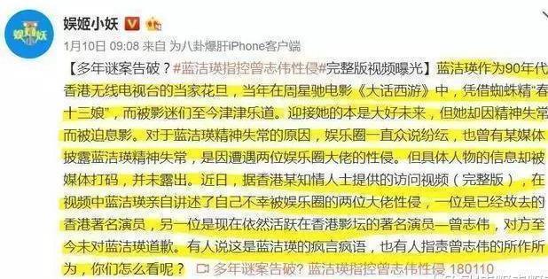 由于蓝洁瑛的去世,她之前指控曾志伟性侵的谜底最终浮出水面,真相之后,曾志伟的人设瞬间崩塌。