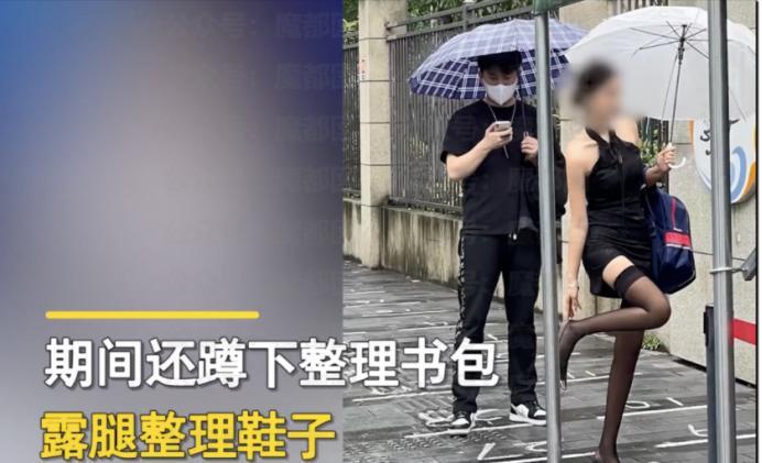 有人随后爆料,她在校门口不止秀了这一套黑丝装行头,还换了好几套衣服摆拍,最后是被家长联名赶走的。