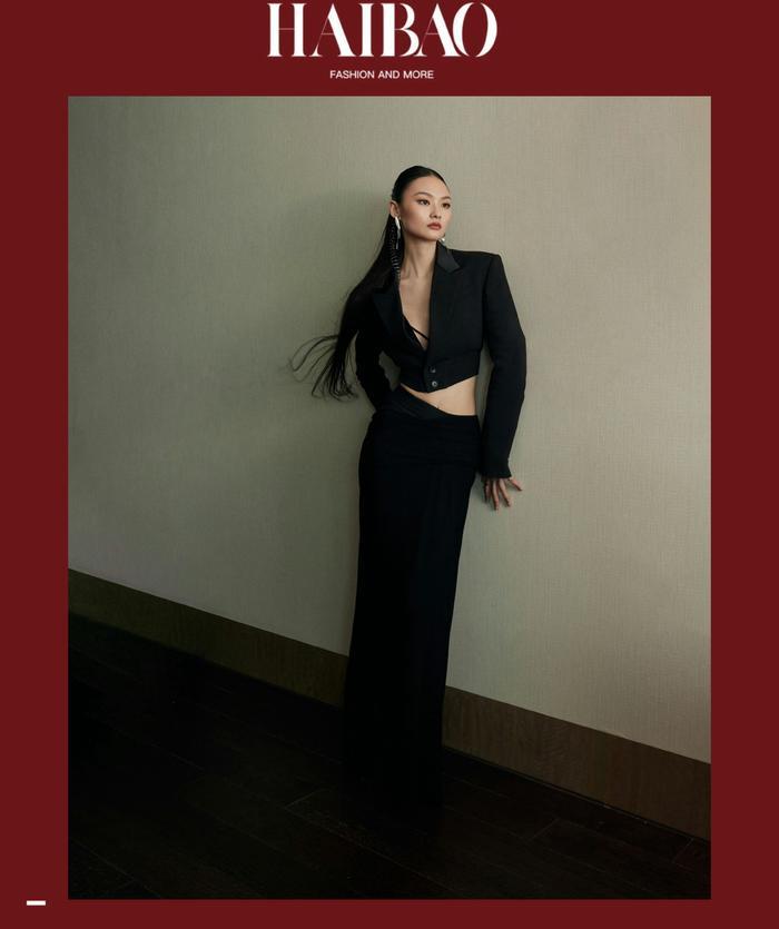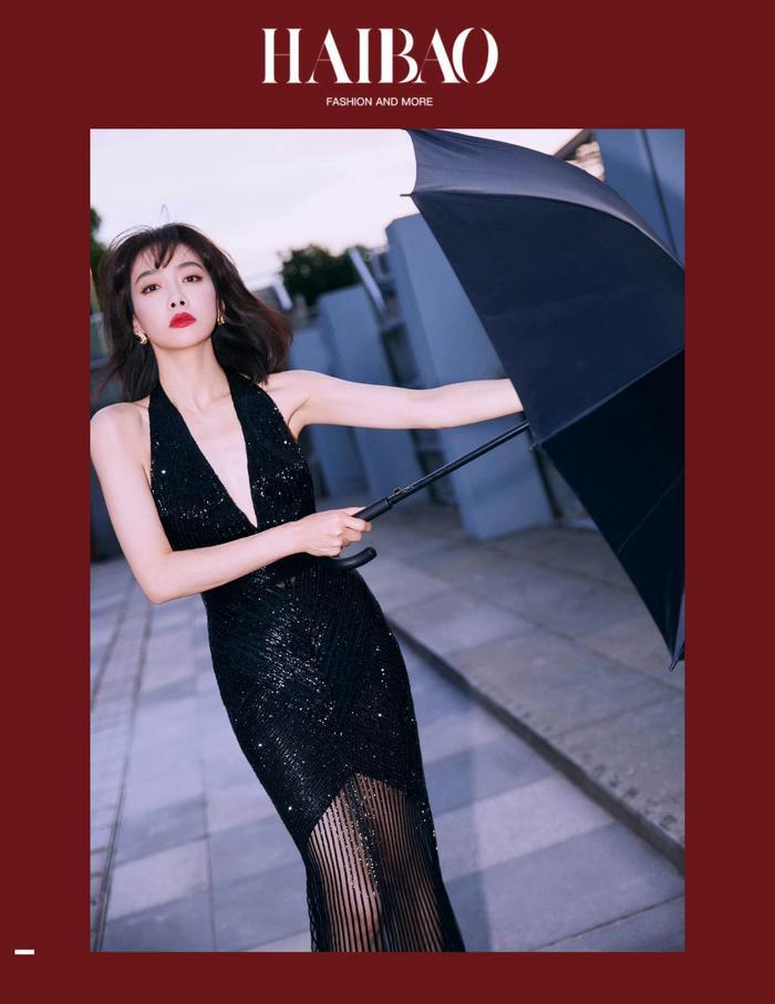 深V礼服打破黑色look 的沉闷和严谨,让肩颈or 后背的线条美无限延伸。V形开口向下不断收窄,那份女性性感也越发尖锐、锋利。
