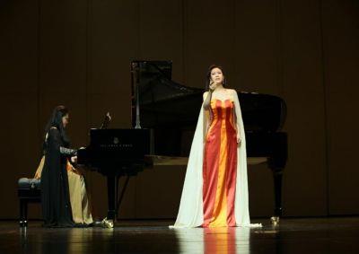 音乐会在一曲《杏花天影·绿丝低拂鸳鸯浦》中缓缓拉开序幕。黄璐的嗓音清澈而富有穿透力,她以细腻的情感处理,将词中描绘的春日景色与淡淡的离愁别绪完美结合,仿佛将观众带入了那个绿柳垂丝、鸳鸯戏水的江南水乡。紧接着,《角招》、《翠楼吟》等曲目逐一上演,黄璐的演唱时而激昂高亢,时而低回婉转,将每一首歌曲的情感表达得淋漓尽致。她不仅展现了女高音的华丽音色,更在演唱中融入了对诗词意境的深刻理解,使得每一句歌词都充满了生命力。