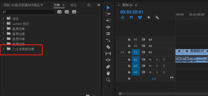 ⑥【自建自己常用效果文件夹】在效果面板,会有很多自己包括自带的一些效果,找起来有点费事,其实平时会用到的就那么几个,你可以自建一个属于自己的常用效果文件夹,把常用的文件拖进属于自己的文件夹就可以了