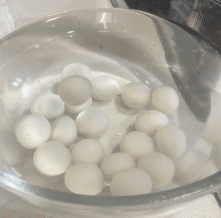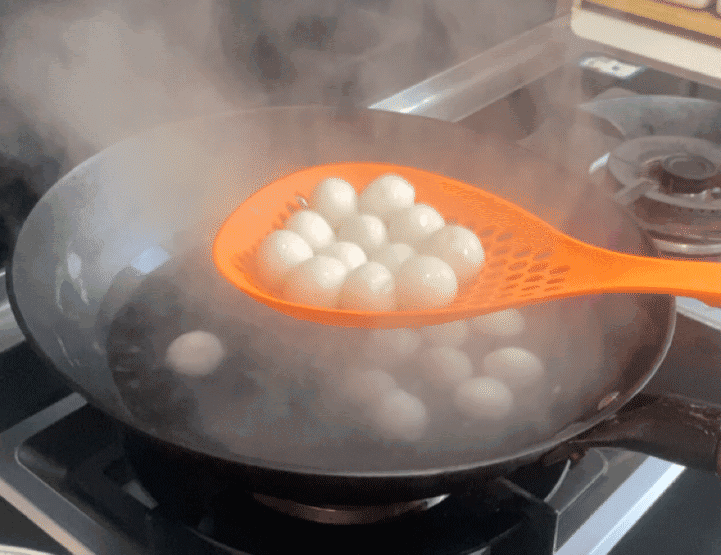 汤圆完全冷却之后,倒入鸡蛋液,让汤圆表面裹上一层鸡蛋液,形成保护膜,这样汤圆不容易裂开。