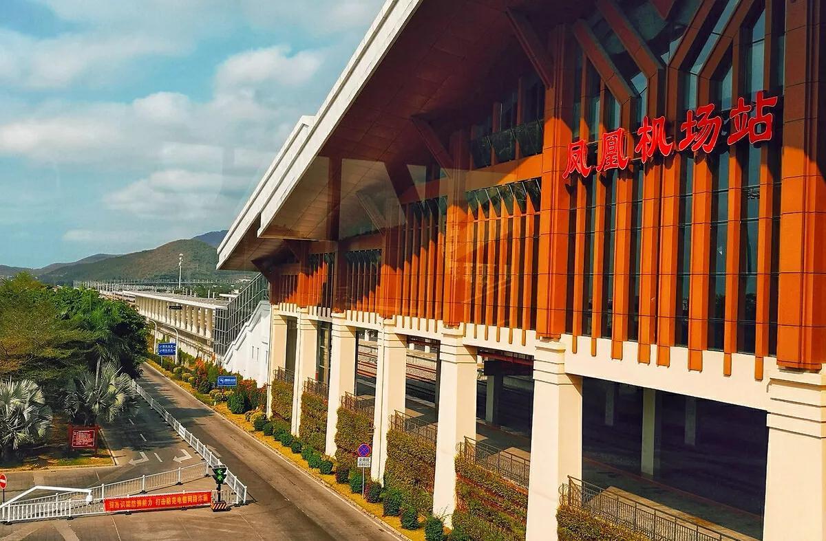 凤凰机场站位于海南省三亚市凤凰镇凤凰村,离凤凰机场航站楼北侧不到200米,距三亚市区约14公里,站房总建筑面积5317平方米,站台按“两台夹四线”格局布置,于2015年12月开通运营,成为继美兰站之后,海南又一个动车站实现与机场无缝对接,切实实现了海南东南部和西部市县群众“乘高铁搭飞机”的出行愿望。