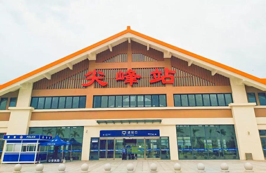 尖峰站位于海南省乐东黎族自治县佛罗镇,距离龙沐湾国际旅游度假区约6.6公里,是海南环岛高铁西环段的一个中间站,站房总面积4000平方米,建筑设计充分考虑其周边的自然环境,采用三段式构图,三组坡屋面与周边优美的尖峰岭风景区交相呼应,体现了尖峰岭自然休闲的地域特色。车站设到发线4条,按照“两台夹4线”的格局布置,并设有旅客进、出站地道一座。