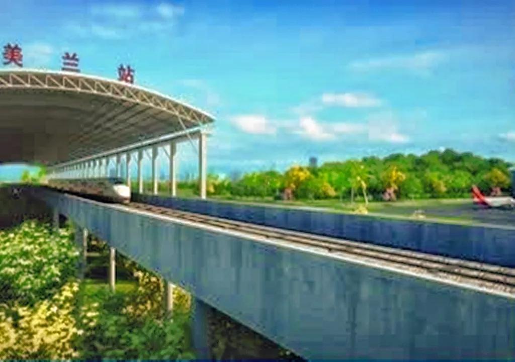 美兰站位于海口美兰国际机场前方,于2008年5月2日动工,2010年12月30日投入使用,站房总面积2.69万平方米,站台规模为2台4线,从站台出口到机场大厅已实现无缝对接,是海南环岛铁路上的中间站,2025年7月1日,海口市郊列车开通后,成为本条线路的端点站。