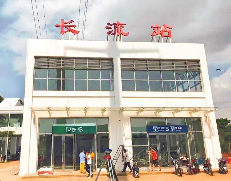 长流站位于海南省海口市秀英区南海大道,是海南环岛高铁(东段)中一个高架客运车站,总造价1.5亿元,建筑面积4300平方米,可同时容纳700余名乘客,原属缓开车站,2025年7月1日随海口市郊列车的开通而运营。