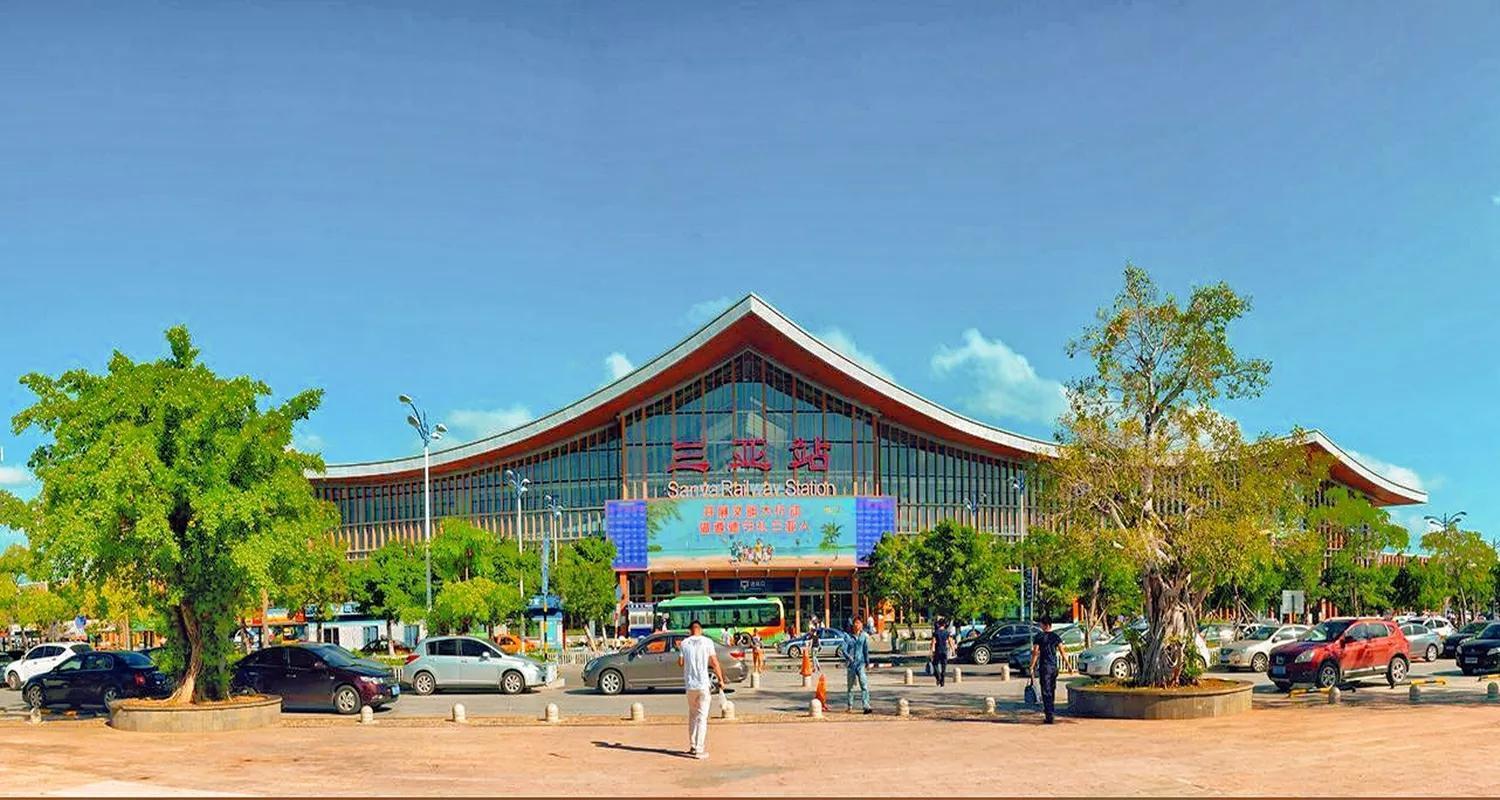 三亚站位于海南省三亚市育秀路10号,总建筑面积达16200平方米,站场规模为4台8线,是粤海铁路、海南东环铁路、海南西环铁路的始发终点站,属于一等客运站,是海南南部的交通枢纽,节假日高峰时段,每日发送旅客数量可达2万7千人次左右。