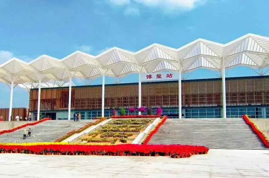博鳌站位于海南省琼海市中原镇大锡村,建于2009年,2010年投入使用,2025年进行扩建,由站房、站棚和装饰树三部分组成,站台规模为2台2线,建筑总面积4900余平方米,整体设计独具特色,站房的雨棚形状犹如32棵“椰子树”,尽显海南风情。博鳌站的开通运营,已成为琼海市迎接博鳌亚洲论坛年会贵宾的又一道靓丽风景线。