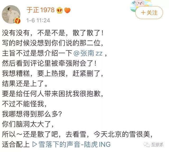 从不指名道姓,但给出的线索却有很明确的指向性,等到吃瓜群众差不多盖棺定论了,他才跳出来把锅推给网友:都是你们乱猜啦,人家可是无辜的——于妈这么多年爆料炒作的渣渣套路从来没变过!