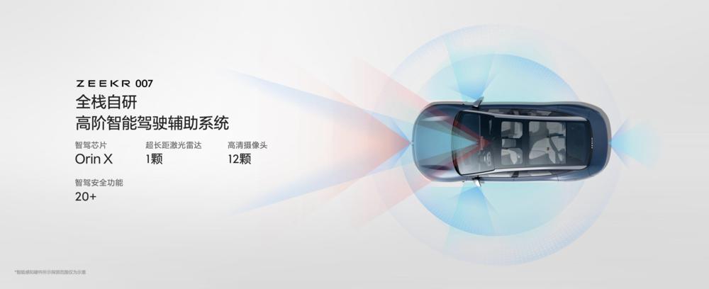 在极氪 007 上,将采用极氪全栈自研的高阶智驾方案。相较于前三款车的纯视觉方案,007 这次终于增加了一颗激光雷达。按照规划,极氪 007 将在 2024 年 1 月上市交付,高速 NZP 领航功能,则做到交付即开通,全国都能用。