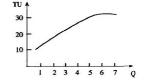 2.随着商品消费量(Q)的增加所带来的总效用TU呈现出先递增后递减的状态。