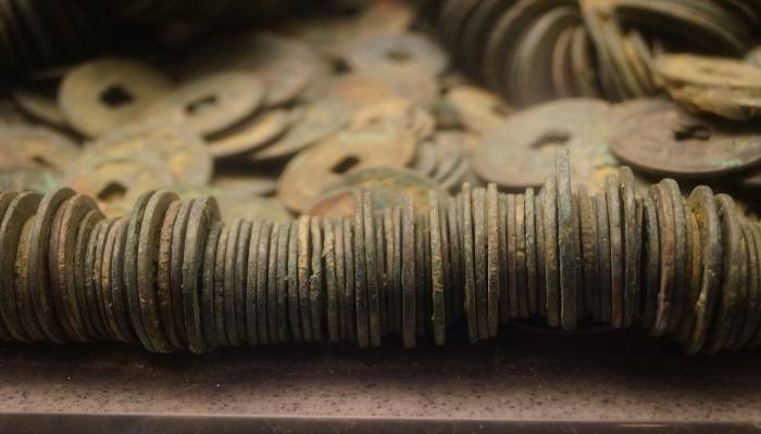 2、五帝钱摆放金库或收款机内,可增进财富。