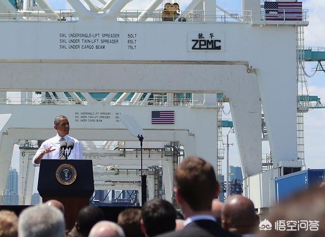 美国奥巴马政府曾在演讲中大力宣传重振美国制造业,但其演讲所在港口的背后却是“振华重工”字样的龙门吊,这是美国制造业空心化的最好证明。