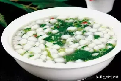 山东济宁汉族传统名菜,微山当地的渔家菜代表作之一,老少咸宜、味美可口鱼丸子呈乳白色,大小如白果,白色的鱼丸漂在汤中,再撒上点蒜苗、香菜,色香味俱佳。
