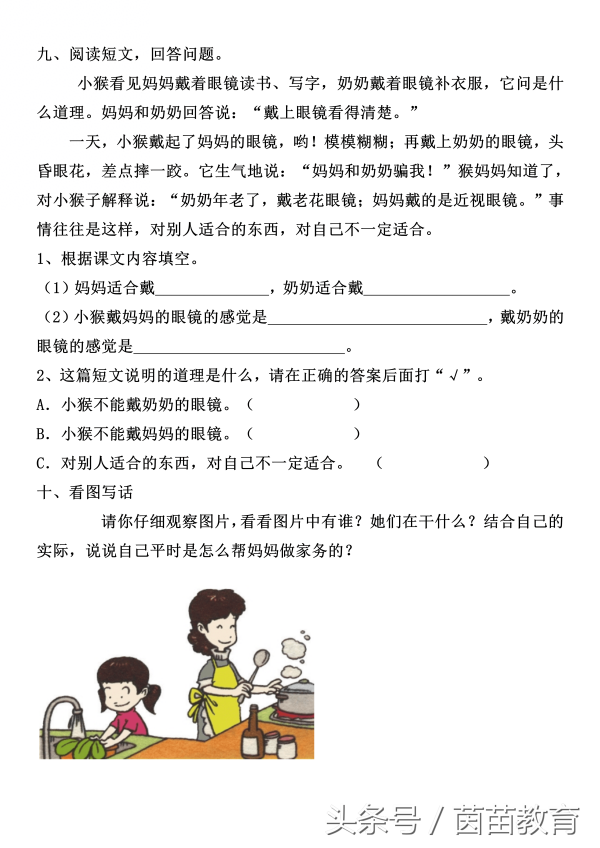 请你仔细观察图片,看看图片中有谁?她们在干什么?结合自己的实际,说说自己平时是怎么帮妈妈做家务的?
